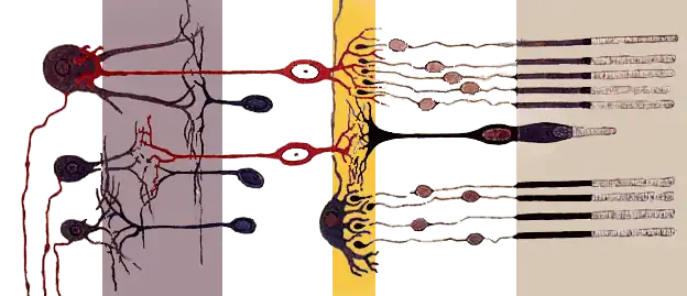 A conceptual illustration of the structure of the retina is shown on the right. As we can see, there are five main cell types: