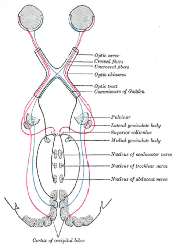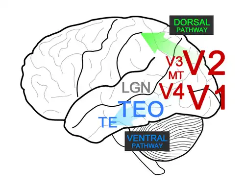 {{cite journal}}: Cite has empty unknown parameter:|month=(help)CS1 maint: multiple names: authors list (link) - ↑ Casagrande, VA (1994). "A third parallel visual pathway to primate area V1". Trends in neurosciences. 17 (7): 305–310.