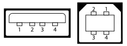 - ↑ Universal Serial Bus Specification Revision 2.0 — 6.5.2 USB Connector Termination Data]