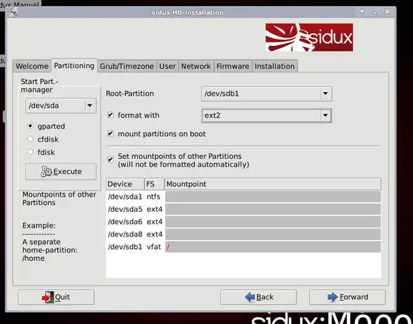 - But if you want to do that, there is full instruction on: http://manual.sidux.com/en/hd-ins-opts-oos-en.htm#raw-lin