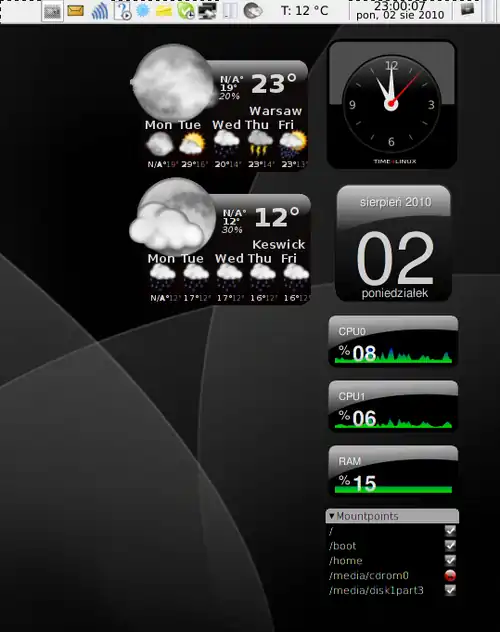 - SuperKaramba - KDE: http://netdragon.sourceforge.net/ssuperkaramba.html, http://en.wikipedia.org/wiki/SuperKaramba