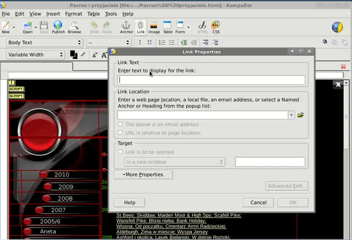 3. And open extracted template with KompoZer clicking on "Open" icon.