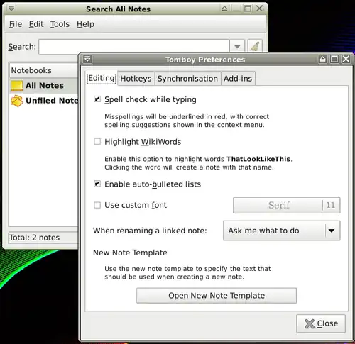 - 2. Run it: Menu-> Accessories-> Tomboy Notes.