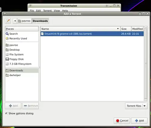 2. Now run Transmission from: Menu-> Network-> Transmission.
