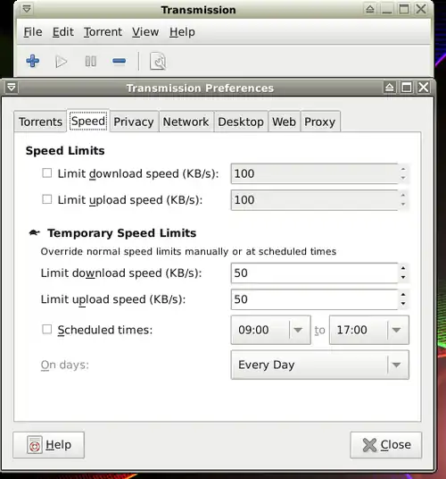 4. Enter: Edit tab-> Preferences if you'd like change settings such as: download or upload speed limit,