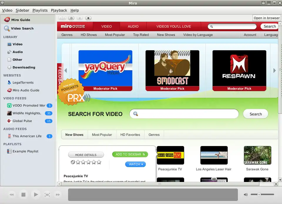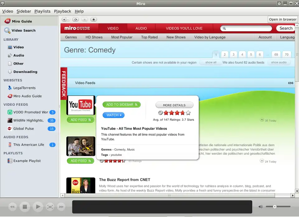 - 2. Run it from: Menu-> Multimedia-> Miro Internet TV