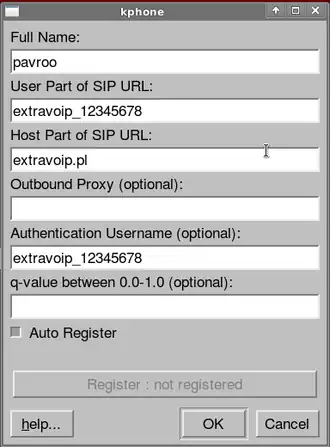 - a. In "User part of sip URL" type your user name or number you got from VoIP provider.