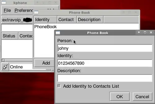 - 4. In: Preferences tab-> Phone Book you may add your contacts.