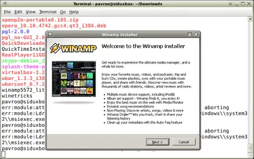 - "msi" applications needs "msi2" package I installed before using "winetricks".