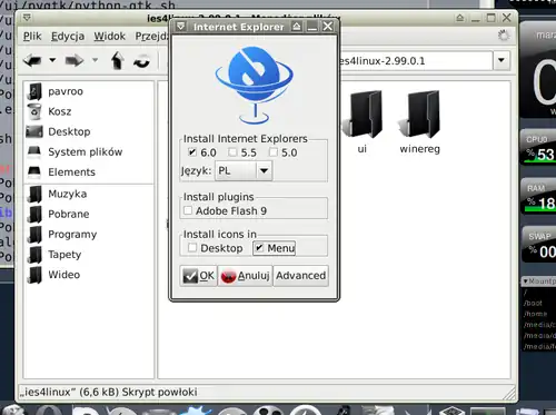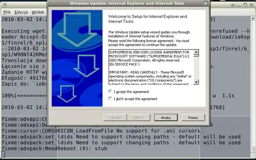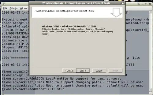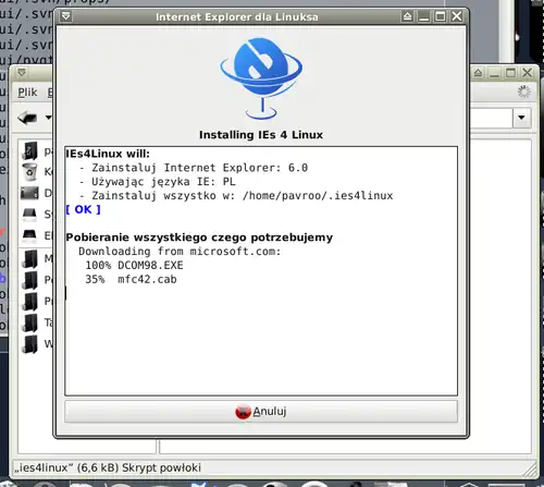 - 3. Next I tried to install "IE6" using "IEs4Linux" script downloaded from: www.tatanka.com