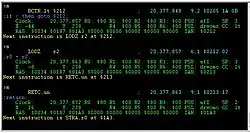 - the instruction, clock cycle count, the number of clock cycles the instruction will take to run, the number of bytes in the instruction, the instruction address and the code byte(s).