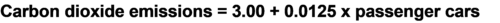 Reading expected values off a chart like Figure 3-2 or Figure 3-3 is one way to find them, but a better way is to use the slope and intercept in an equation to compute them. For example, the equation to compute expected values of carbon emissions is depicted in Figure 3-6. This equation uses the slope and intercept for carbon emissions that were reported in Figure 3-4. These are the same slope and intercept that were also used in the scatter plots of carbon emissions versus passenger cars.