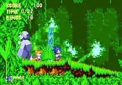 In Knuckles' version, since he is unable to reach the platform that leads to the upper section, he must break a rock that leads into the lower section where he can fight the boss.