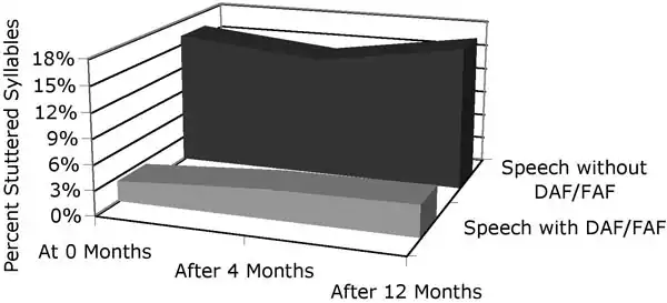 The difference between the two studies is the "carryover fluency," or the subjects' speech without the devices. The DAF users had more than 50% carryover fluency. The DAF/FAF users had no statistically significant carryover fluency.