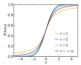 ![{\displaystyle {\begin{matrix}{\frac {1}{2}}+x\Gamma \left({\frac {\nu +1}{2}}\right)\cdot \\[0.5em]{\frac {\,_{2}F_{1}\left({\frac {1}{2}},{\frac {\nu +1}{2}};{\frac {3}{2}};-{\frac {x^{2}}{\nu }}\right)}{{\sqrt {\pi \nu }}\,\Gamma \left({\frac {\nu }{2}}\right)}}\end{matrix}}}](../../_assets_/eb734a37dd21ce173a46342d1cc64c92/02732e546784af1fb16d0dc1bb65dd743e2284ad.svg) where 2F1 is the hypergeometric function