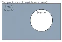 Negation is a way of saying "not A", hence saying that the complement of A has occurred. Note: The complement of an event A can be expressed as A' or Ac