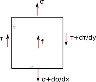 Suppose the body is in equilibrium and is acted upon by the forces fx and fy (per unit volume) in the x and y directions respectively.