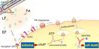 Croston, Glenn. "Anthrax Toxin Mechanism of Action ." Biocarta. N.p., n.d. Web. 30 Nov. 2011. <www.biocarta.com/pathfiles/h_anthraxPathway.asp>.