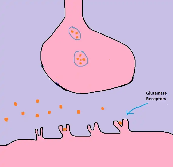 2) In another area of the brain, Glutamate acts as the brain’s general purpose excitatory neurotransmitter.