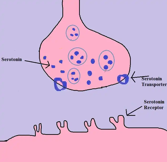 1) Serotonin is removed from the synaptic cleft by serotonin transporters after they have done their job.