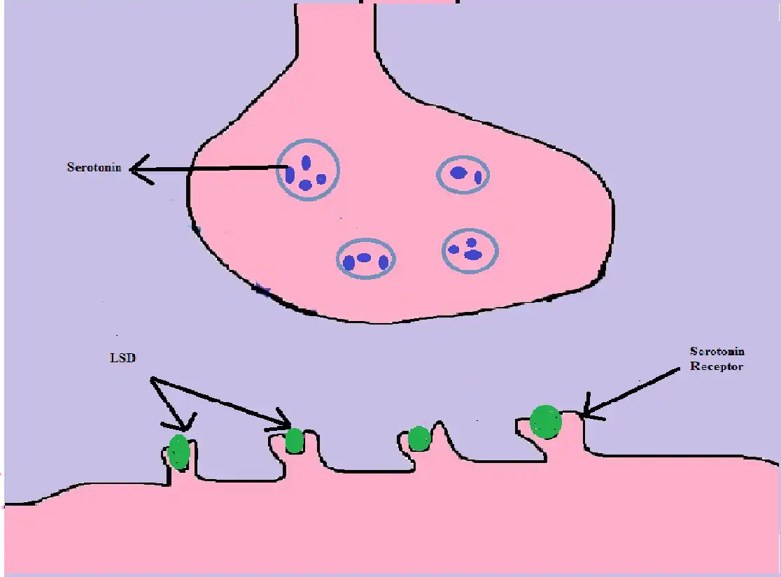 1) LSD drug is exclusive on a neuron called serotonin. LSD shape resembles that of Serotonin and diminish the serotonin effect by binding to its receptor.