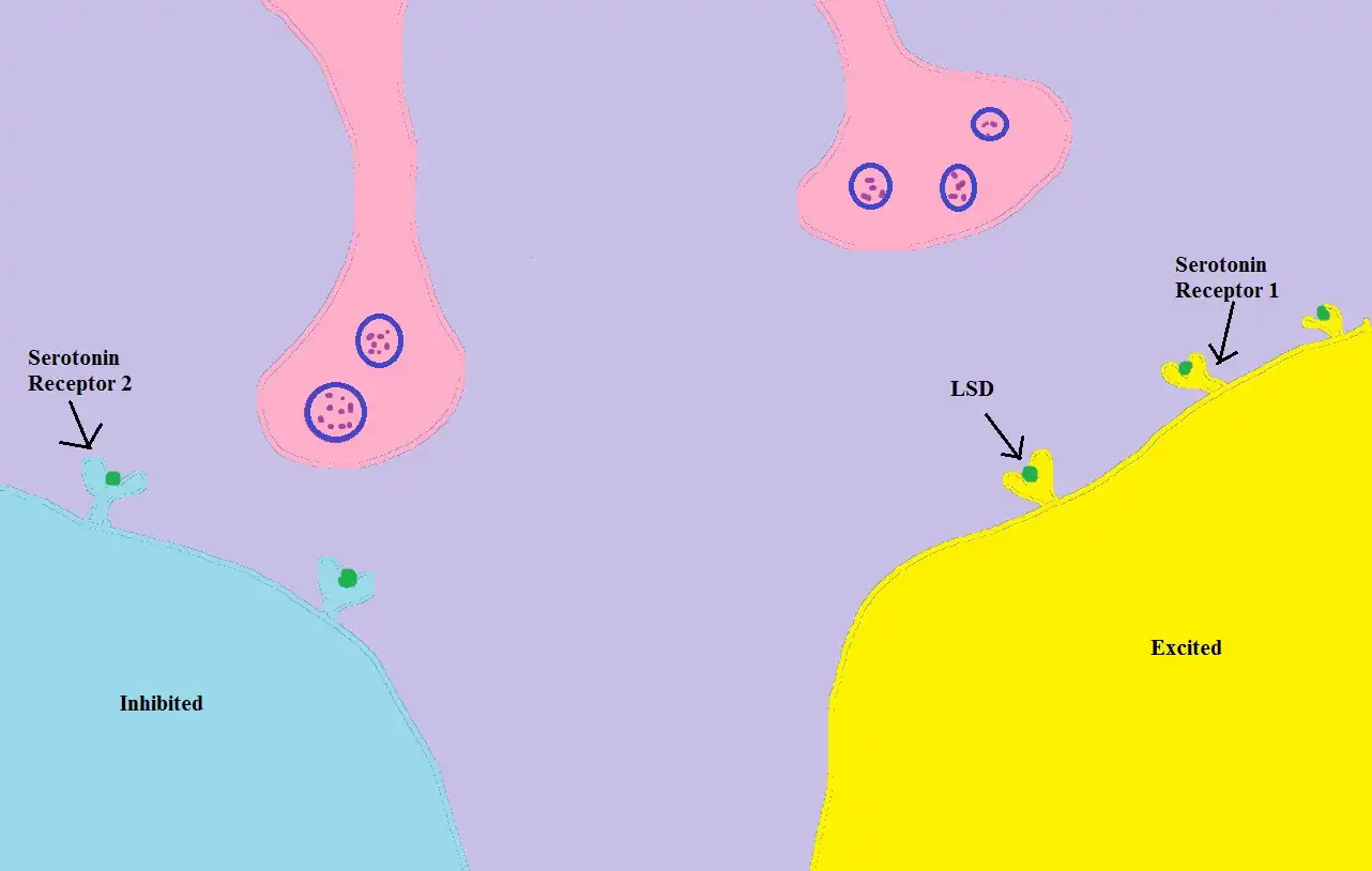 3) LSD binds to certain receptors but not in the same way usually. LSD can inhibit or excite these receptors. This is why LSD has complex sensory effects.