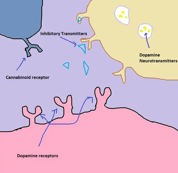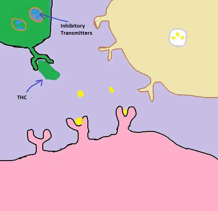 1) Inhibitory neurotransmitters are active in the synapse before marijuana goes into the system. The job of these neurotransmitters is inhibiting dopamine from being released into the synapse.