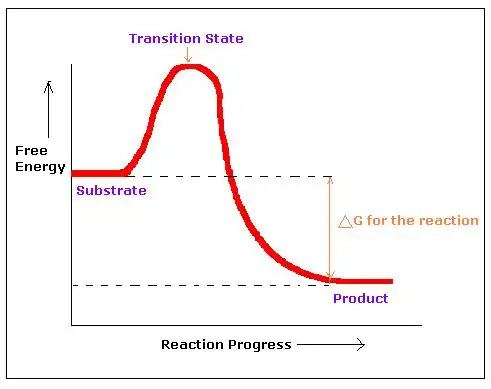 By definition, the transition state is the transitory of molecular structure in which the molecule is no longer a substrate but not yet a product. All chemical reactions must go through the transition state to form a product from a substrate molecule. The transition state is the state corresponding to the highest energy along the reaction coordinate. It has more free energy in comparison to the substrate or product; thus, it is the least stable state. The specific form of the transition state depends on the mechanisms of the particular reaction.