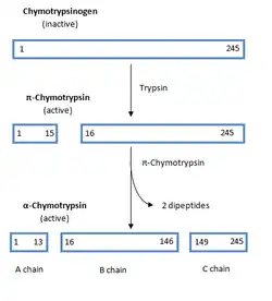 As a proteoplytic activation, chymotrypsin has been biologically known to work as digestive enzymes, blood clotting, protein hormones, and procaspases (a programmed cell death).