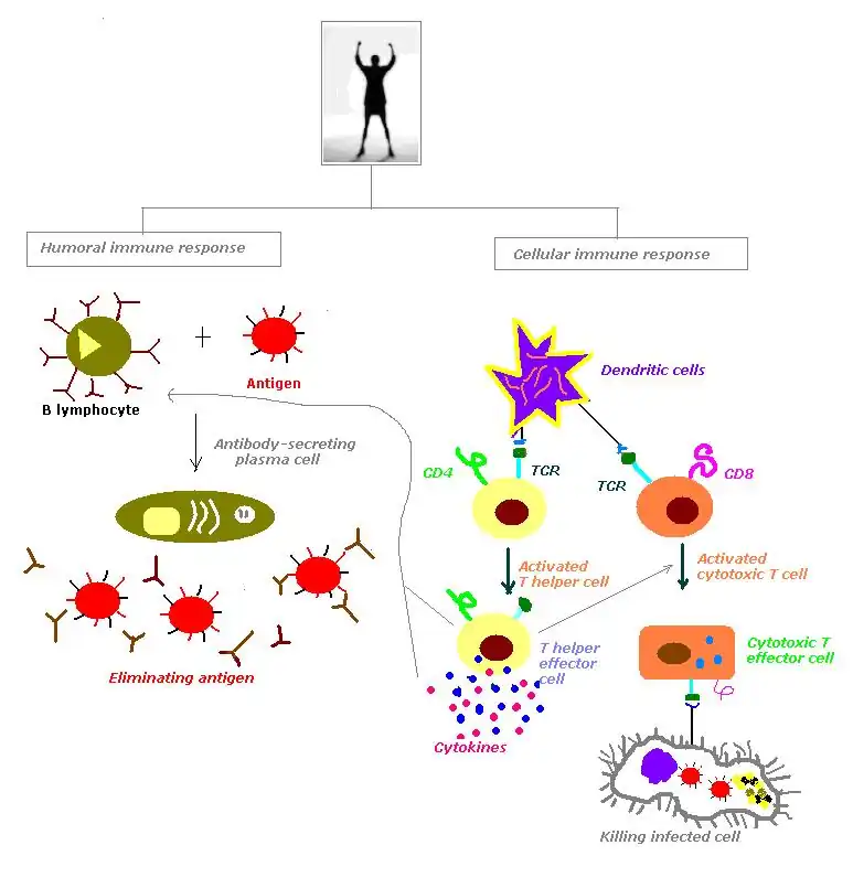 Cellular immunity is also known as cell-mediated immunity (CMI). This type of immunity act as the second arm of the immune responses. There are different functions of immune cells. For example, this type of cell-mediated immunity includes the killing of intracellular pathogens and direct cell killing by cytotoxic T cells, natural killer cells, and killer cells (T-cells work by scanning the surface of a cell for anything that appears foreign.) In CMI, the T cells or the lymphocytes would attach to the surface of other cells, then it would display an antigen and trigger a response. This type of immune response may also include white blood cells (leukocytes).
