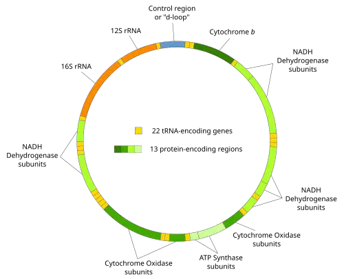 Mitochondrial DNA (mtDNA) is maintained apart from nuclear DNA. Because of mtDNA’s small size, it can only boast 37 genes and 13 protein products whereas the haploid nuclear genome encodes over 20,000 genes. However, it can provide a model system for studying nuclear DNA replication. The genome for the circular mtDNA contains approximately 16,600 base pairs in human beings. The encoded genes are also found to be necessary for making ATP by way of oxidative phosphorylation. There seems to be no specific phase for mtDNA to be replicated, meaning the replication can take place over and over during a cell cycle.