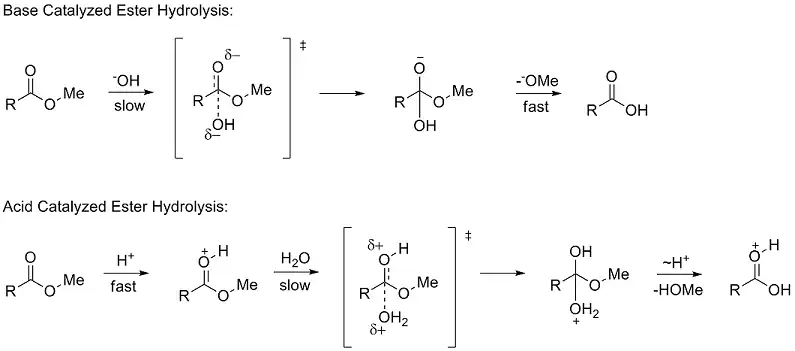 When a chemical reaction is introduced, oftentimes only the reactants and products are shown. In the example shown below, normally the ester would be shown as the starting material, along with its product, the carboxylic acid. It is our job to describe the overall transformation taking place in a reaction, in the example below—the hydrolysis. In the example shown below, the ester was able to hydrolyze to the carboxylic acid through a series of reaction intermediates. With organic mechanisms it is our job to study how and when bonds break and form, and how different changes in substrates might affect the outcome of a reaction.