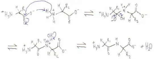 Another role amino groups play in biochemistry is in enzymes. In the case of a protease, an enzyme which cleaves amino acids, a tetrahedral transition state is formed when the hydroxy group of serine attacks the carbonyl carbon of the amino acid. Because the tetrahedral transition state has a negative charge, the positive NH3+ charges help to stabilize the transition state, forming what is called an oxyanion ring.