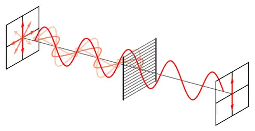 Plane-polarized light result from passing a beam of ordinary light through a special material called a polarizer. A polarizer serves as a filter for the light waves that pass through it and filters out all but one light wave, the plane-polarized light wave [2]. Once the light has been filtered to just the plane-polarized light, the light wave travels through the chiral molecules. The electric field of the light wave interacts with the electrons around the chiral molecule and causes the molecule to rotate at a particular direction; this rotation is called optical rotation [2]. If there is optical rotation in the sample, then the sample is referred to as optically active. To determine if a sample is optically active, optical rotations have to be measured with a polarimeter.