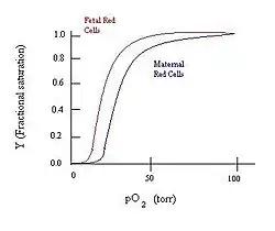 Fetal hemoglobin has a higher affinity for oxygen than does regular hemoglobin. Regular hemoglobin is made of two alpha/beta dimers, while fetal hemoglobin is made of two alpha/gamma dimers. The gamma subunits have a lower affinity for binding 2,3-BPG. Thus, with less 2,3-BPG, fetal hemoglobin has a higher affinity for oxygen. This is advantageous for the fetus, as oxygen must be carried longer distances (from the mother) than in regular situations.