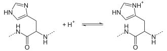 There is a chemical basis that is responsible for the pH effect. The histidine residue of hemoglobin molecule structure is one factor of the pH effect. At high pH, the side chain of histidine is not protonated and the salt bridge between histidine's terminal carboxylate group and a lysine residue, does not form. However as the pH drops, meaning at low pH levels, the side chain of histidine will become protonated and thus form a salt bridge with Aspartate instead. This electrostatic interaction results in a structural change. The formation of salt bridges stabilizes the hemoglobin structure resulting in a lower O2 affinity of hemoglobin and thus increase the tendency for oxygen to be released.