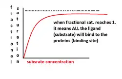 Binding site: a region of the protein that is complementary to a specific molecule or ion. This site usually exhibits specificity to ligands. The weak interactions of the primary structure of protein, specifically the side chains to the ligand, usually initiates a response. The concentration at which all binding sites are bound to a ligand is termed the point of saturation.