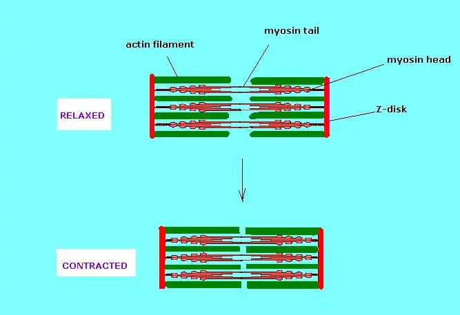 According to the sliding filament theory by Andrew Huxley and Ralph Niedergerke, muscles contract when Z-discs come closer together thus shortening the sarcomeres. Actin filaments from the I-bands become very short while myosin filaments from the A-bands do not change in length. The actin filaments are actually sliding towards the H-zone and the A-bands thus creating an overlap of myosin and actin filaments. As this overlap occurs, myosin filaments are binding to the actin filaments, allowing myosin to function as the driving motor of filament sliding.