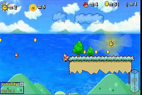 This is the first real course of Super Mario 63. Be sure to be weary of the Bob-ombs everywhere! This level requires 1 Shine Sprite to unlock.