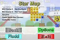 The Star Map tracks your progress in the game collecting shine sprites and star coins. You access it from the pause menu. Click the icons at the left to alternate between the maps of Shine sprites and Star coins.