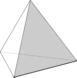 A solid angle is an angle in three-dimensional space that covers a polyhedron on a vertex. This angle is enclosed by three or more than 3 solid angles.