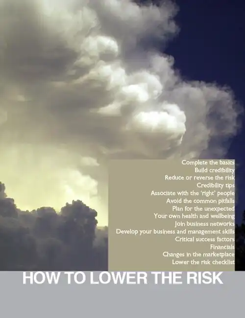 From the moment you talk to others about your ideas and plans, people will start forming their opinions of you and your business. If they perceive any risk at all in dealing with you, they may be unwilling to support your business and remain instead with your competitors.