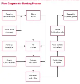 In the above flow diagram, the capping machine is the slowest machine in the process. If this machine operates at 1,000 bottles per hour, then this figure effectively sets the overall rate of production for the whole process.