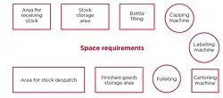 In the case of a bottling plant, the layout will need to take account of the most efficient flow of materials and operational processes.