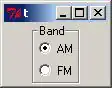 pack [labelframe .lf -text Band] pack [radiobutton .lf.am -text AM -variable band -value AM] pack [radiobutton .lf.fm -text FM -variable band -value FM] set band AM