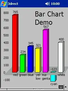 The following script displays a bar chart on a canvas, with pseudo-3-dimensional bars - a rectangle in front as specified, embellished with two polygons - one for the top, one for the side:}