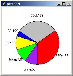Arc elements of a canvas are by default rendered as pie slices (part of the circumference of a circle, connected by radius lines to the center. Hence it s rather easy to produce a pie chart. The following code is a bit more complex, as it also determines positions for the labels of the pies: