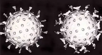 With the invention of electron microscopy in 1931 by the German engineers Ernst Ruska and Max Knoll came the first images of viruses.[12] In 1935 American biochemist and virologist Wendell Meredith Stanley examined the tobacco mosaic virus and found it to be mostly made from protein.[13] A short time later, this virus was separated into protein and RNA parts.[14] A problem for early scientists was that they did not know how to grow viruses without using live animals. The breakthrough came in 1931, when the American pathologist Ernest William Goodpasture grew influenza and several other viruses in fertilised chickens' eggs.[15] Some viruses could not be grown in chickens' eggs, but this problem was solved in 1949 when John Franklin Enders, Thomas Huckle Weller and Frederick Chapman Robbins grew polio virus in cultures of living animal cells.[16] Over 2,000 species of virus have been discovered.[17]
