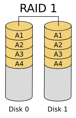 Hard disks were originally developed for use in connection with, or later inside, a single computer. Later, as a way of guarding against hard disk failure, they were arranged into configurations such as redundant array of independent disks (RAID). RAID is a method of storing data on two or more hard drives that work together. One common RAID technique which RAID1 uses is disk mirroring. Disk mirroring is when data is written to two duplicate hard drives at the same time. This way if one hard drive files, the date automatically moves to the other hard drive where you can access it. This technique greatly reduces the chance of loss of data and/or service.