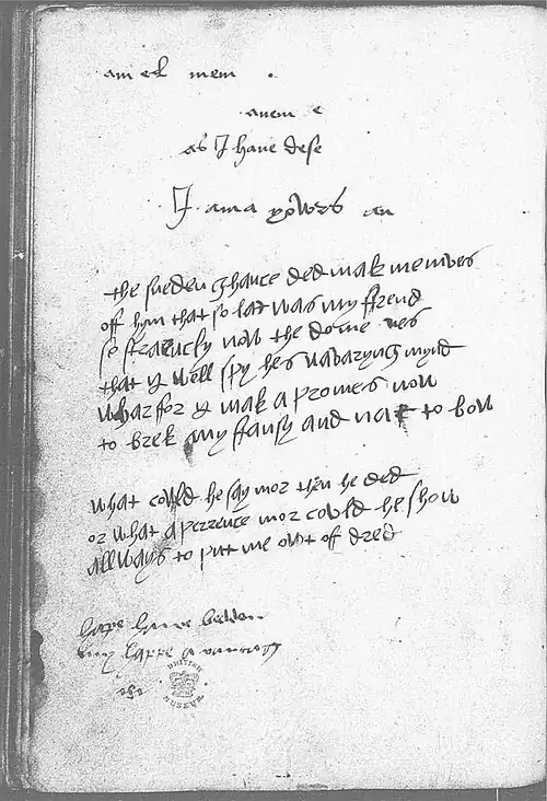 | ←The pleasaunt beayt of swet Delyte Dothe blynd | the sueden ghance ded mak me mves→ |